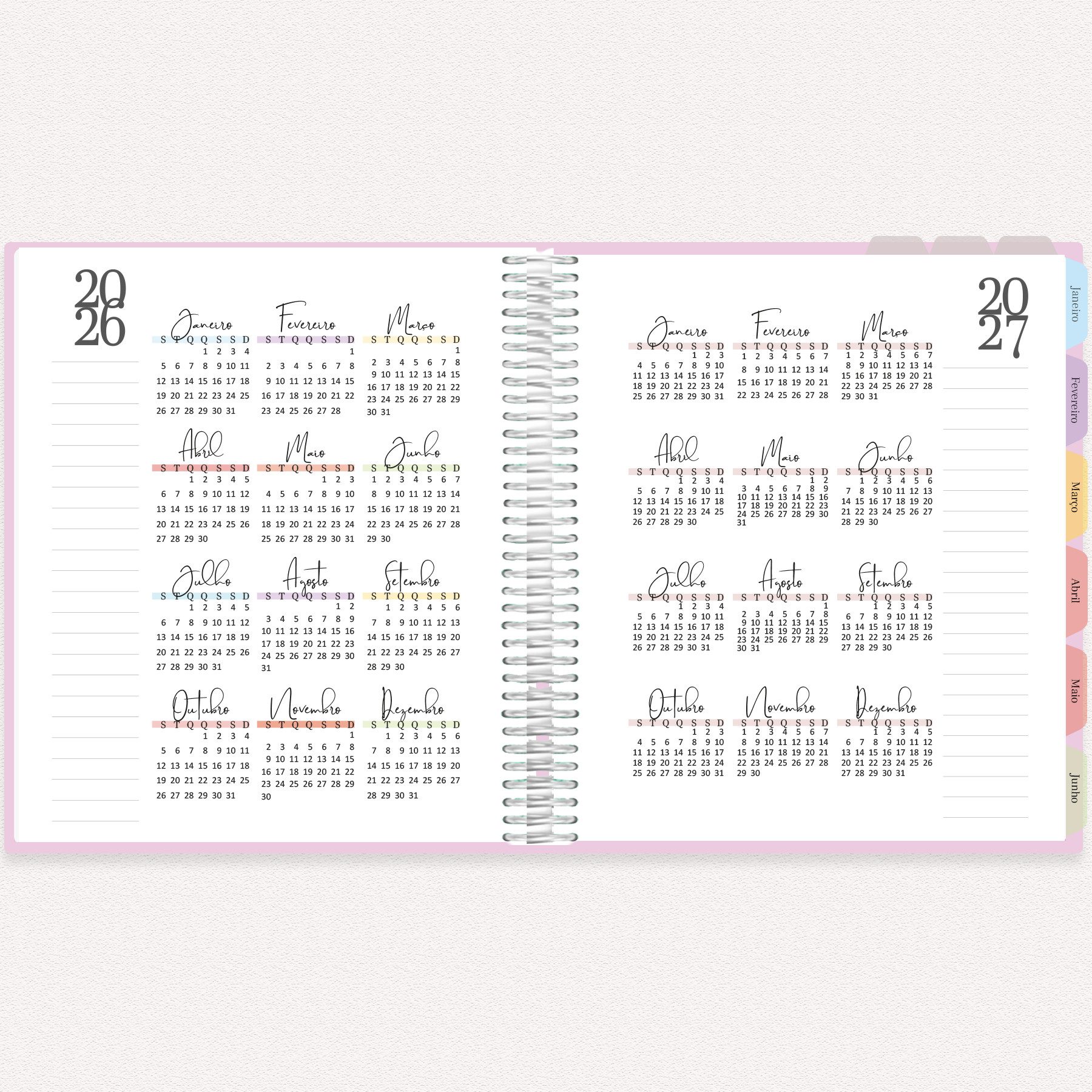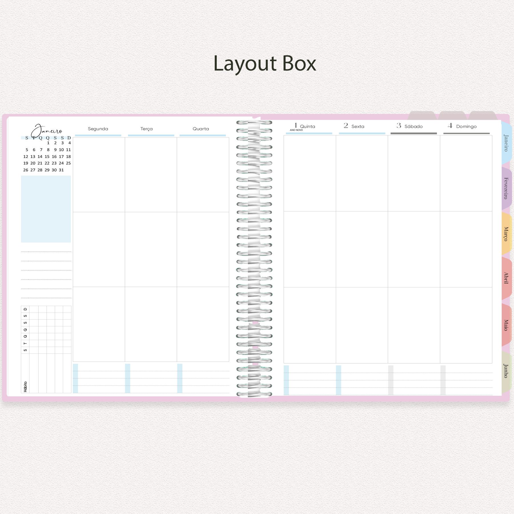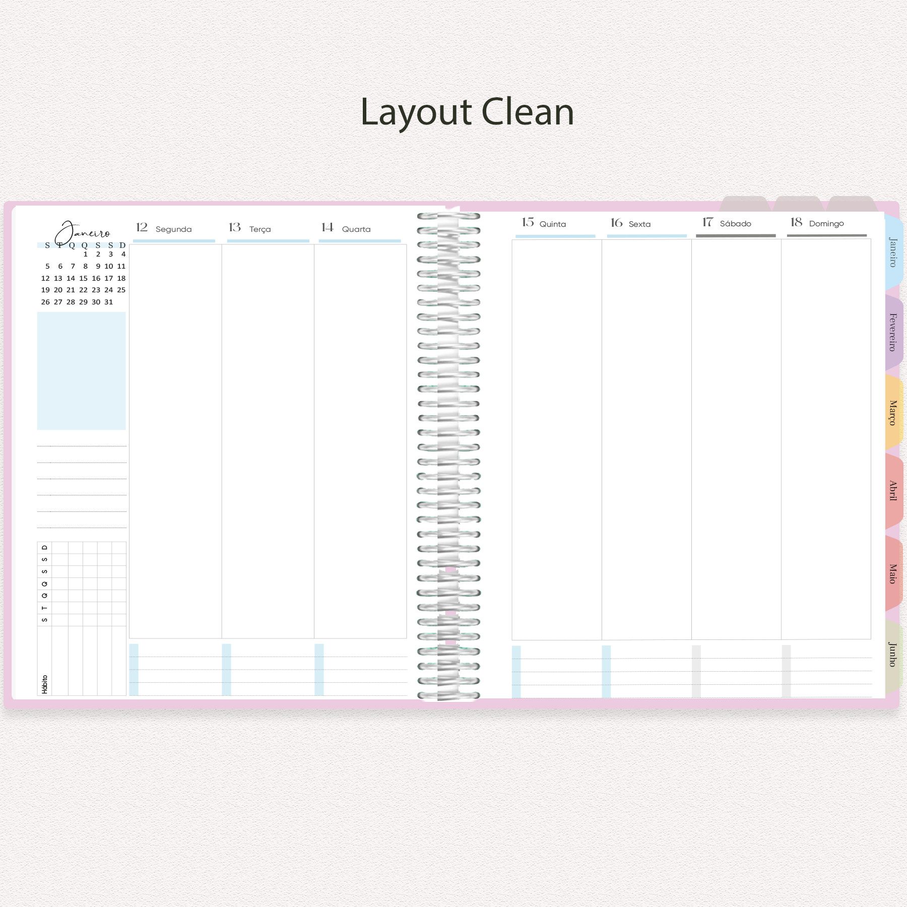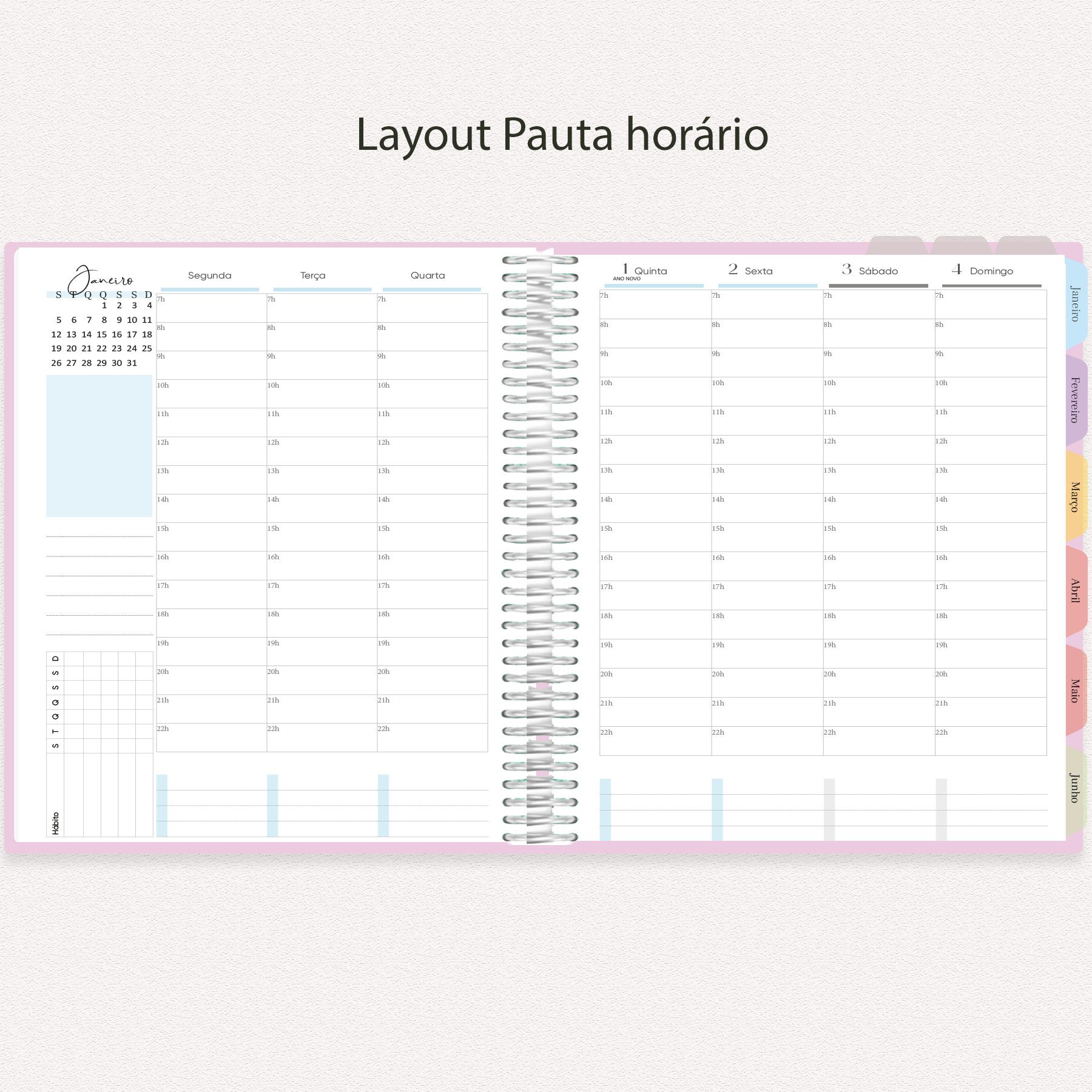 Você pode imprimir o planner completo ou apenas as seções necessárias, bem como escolher o layout semanal que melhor atende seu público. É possível encadernar, furar e adaptar o material ao estilo da sua papelaria.